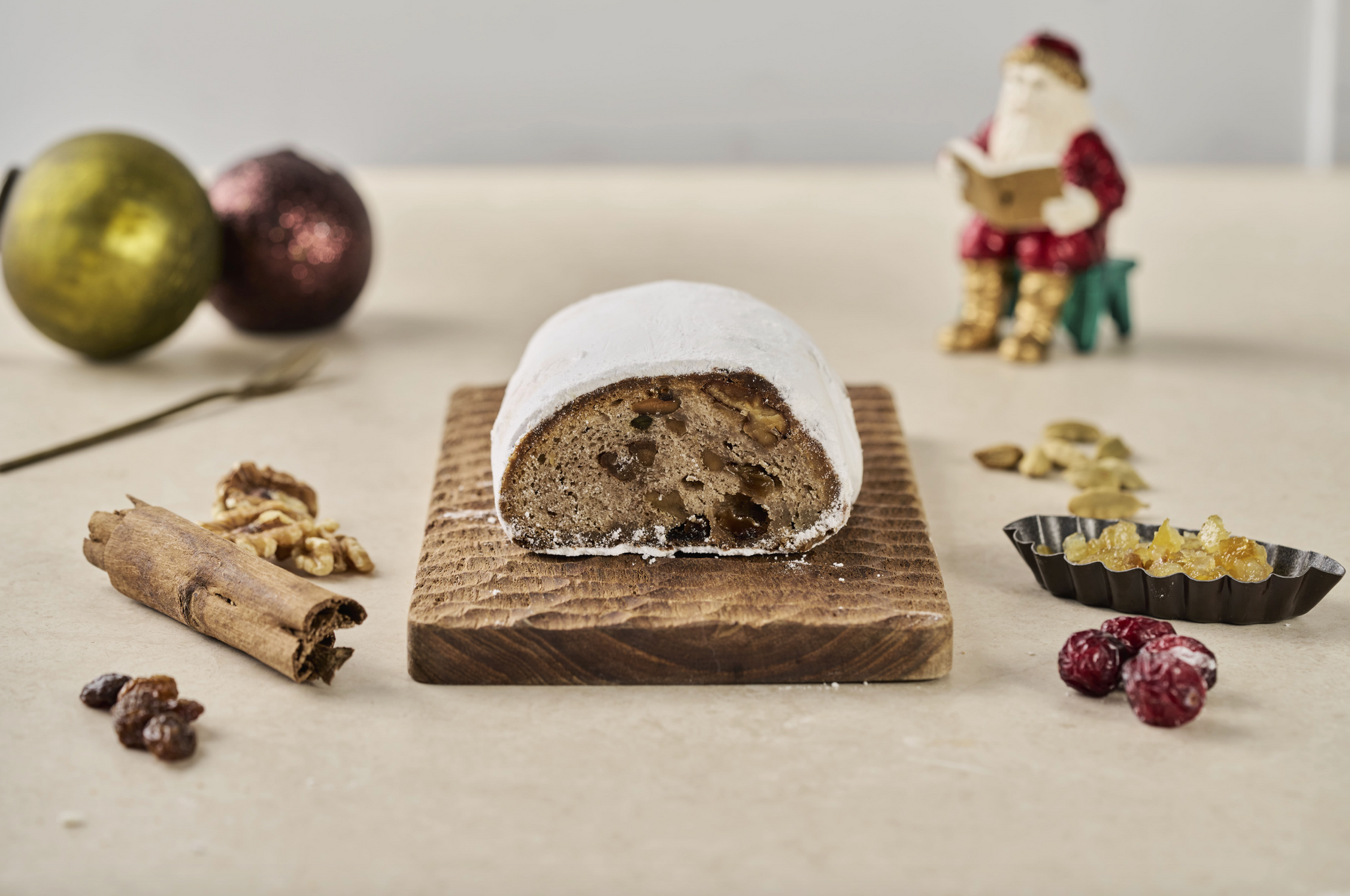 ラトビア産クランベリー、マスカットレーズン、レモンピール、ローストしたクルミとピスタチオを、ラム酒で1ヶ月じっくりと丁寧に練り込み、生地いっぱいに練り込み風味豊かに仕上げました。シュトレンの本場ドイツ漬けの伝統のクラシックな製法をベースに手作りしています。酸味と、オールスパイスのスモーキーさ、シナモンの華やかな甘さ、またそこに爽やかなカルダモンをプラスすることでスパイスの織りなす奥深い香りが口いっぱいに広がります。彩り豊かなフルーツが、クリスマスシーズンを美しく華やかに彩ります。白ワインや浅煎りのコーヒーと相性ぴったりです。